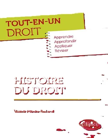“Cet ouvrage fournira aux étudiants en droit toutes les clés pour (re)découvrir l’Histoire du Droit. Pour chaque chapitre couvrant un thème de l’histoire du Droit, cet ouvrage vise 4 objectifs : Apprendre : des fiches de cours pédagogiques et exhaustives ; Approfondir : des éléments pour aller plus loin sur un point spécifique du sujet ; Appliquer : des exercices d’application corrigés ; Réviser : des fiches sur les notions essentielles à connaître. Un ouvrage essentiel pour maîtriser et approfondir son cours d’Histoire du Droit.”