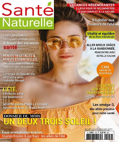 Le magazine N°1 de la santé au naturel. La santé est la préoccupation première des Français, avec le pouvoir d’achat. Sachant que l’un ne va pas sans l’autre, en ces temps difficiles, Santé naturelle vous guide à travers cet univers. Santé Naturelle est le magazine du bien-être au féminin.